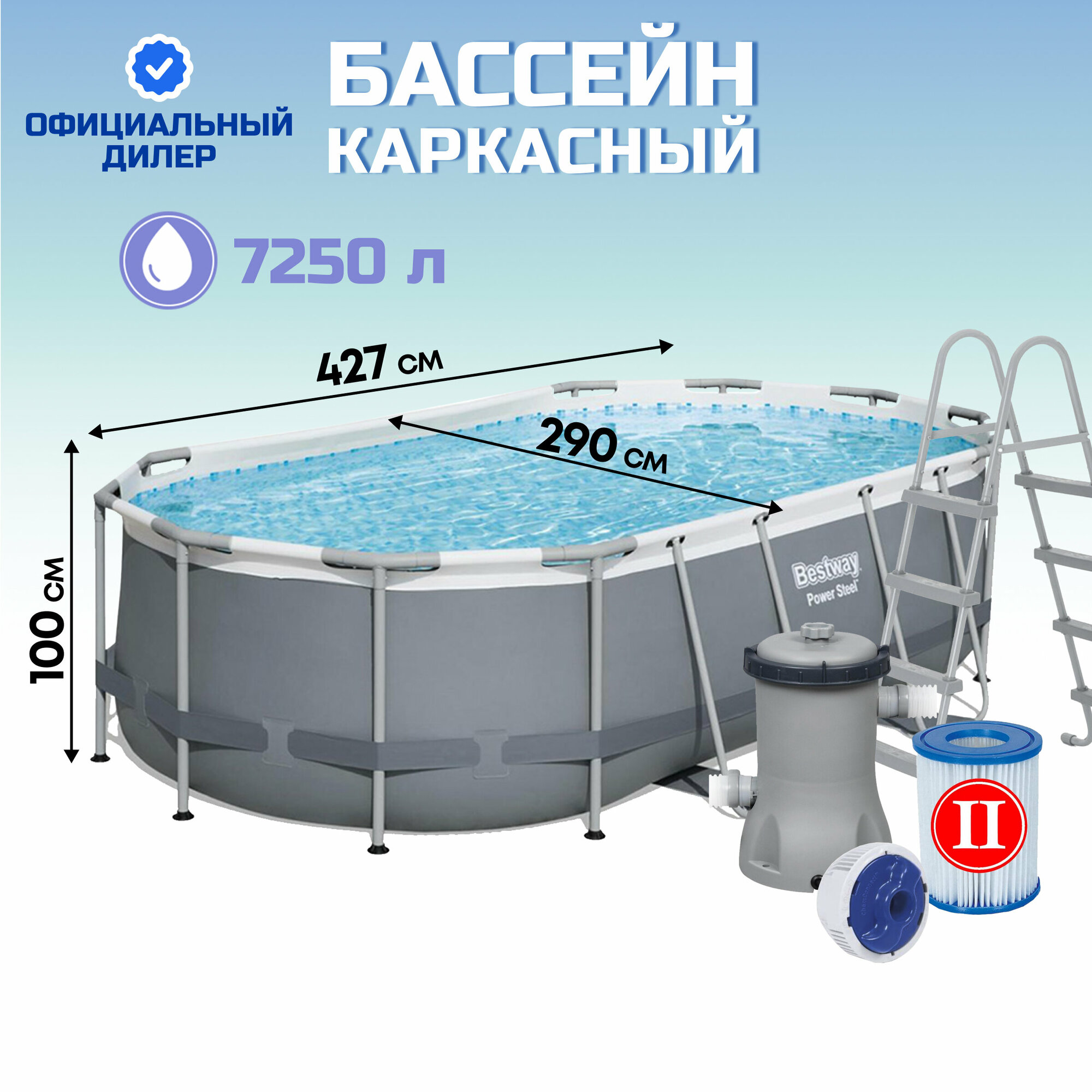 Каркасный овальный бассейн Bestway 427х250х100 см, 7250 л, фильтр-насос 2006 л/ч, лестница 56620 BW 004875
