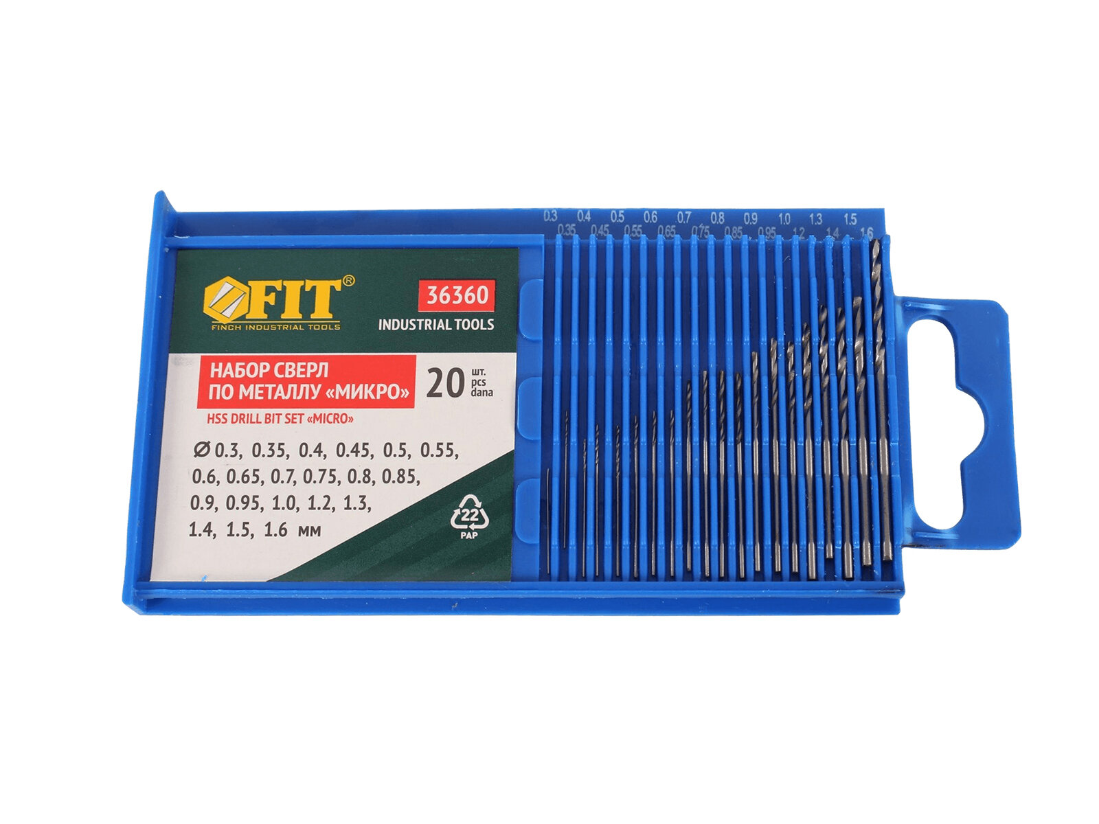 Fit Буры,сверла,долото IT Сверла по металлу HSS полированные "микро" набор 20 шт. 0,3-1,6 мм 36360