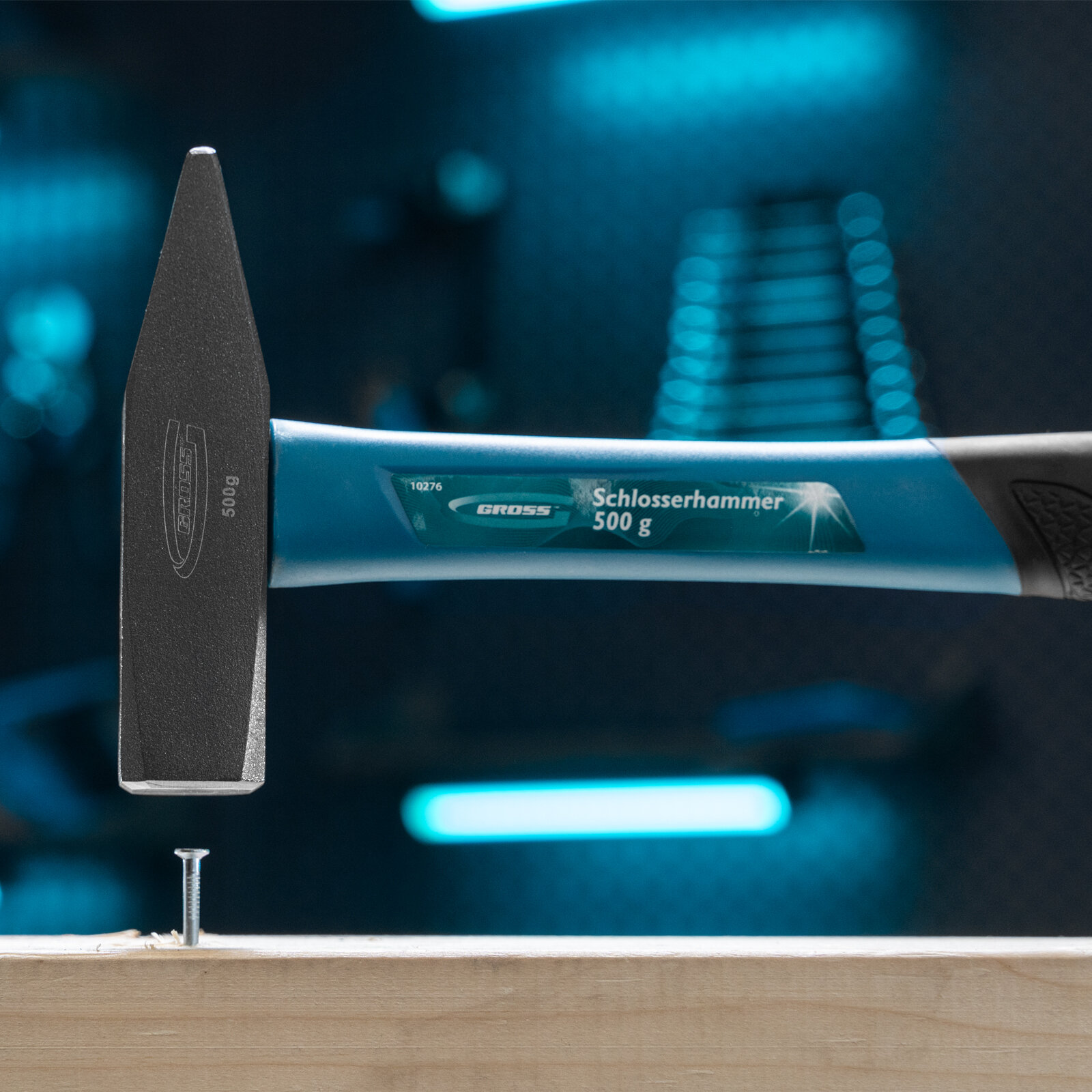 Молоток слесарный, 500 г, квадратный боек, фибергласовая обрезиненная рукоятка// Gross 10276 .