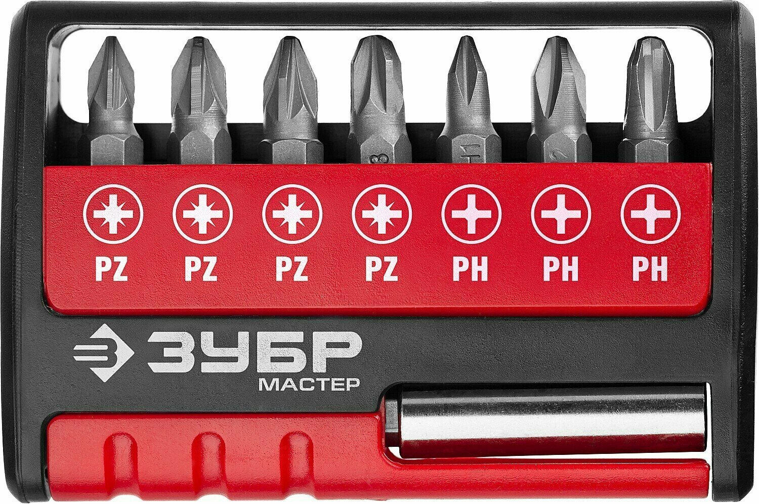 Набор бит Зубр MX, Cr-V 25мм с магнитным держателем, 8 предметов