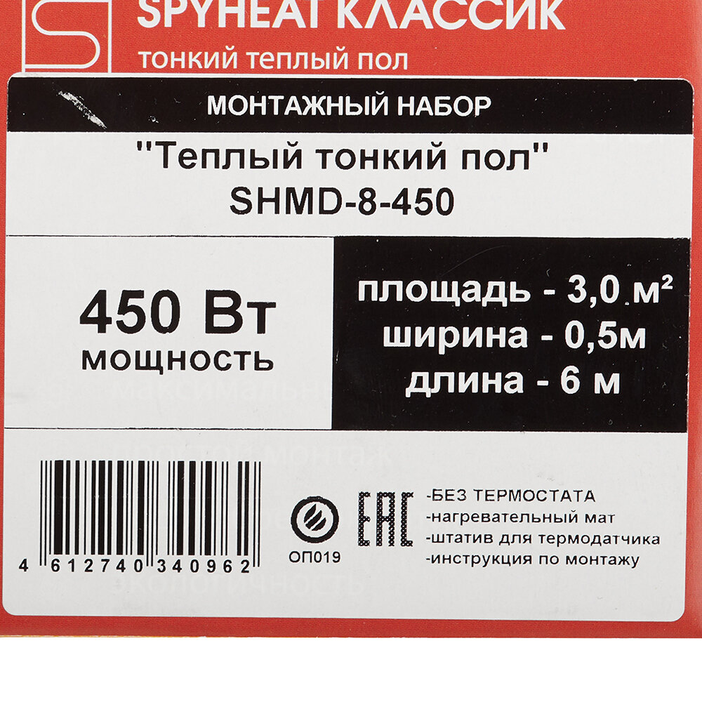 SPYHEAT Мат нагревательный SpyHeat 3,0 кв.м / SHMD-8-450