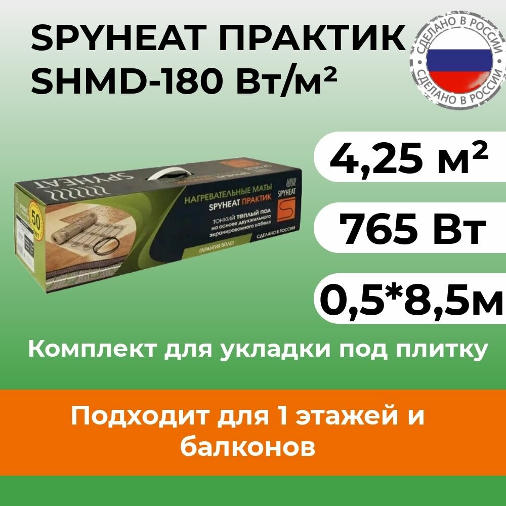 Теплый пол нагревательный мат SPYHEAT Практик 4,25 кв.м 180 (765) Вт