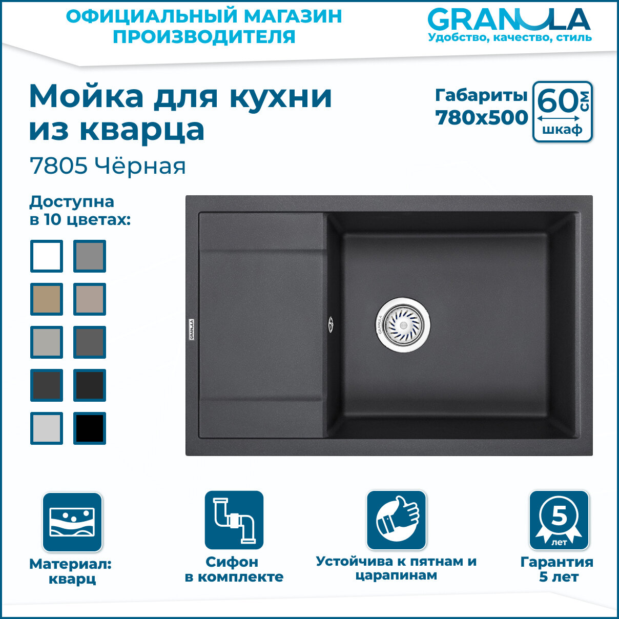 GRANULA 7805 мойка, гранит, шварц