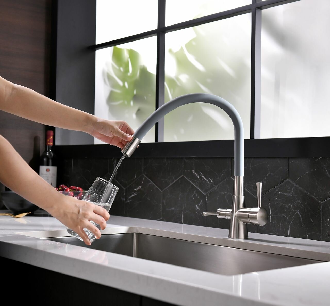 Чёрный излив крана гибкий - удобно |