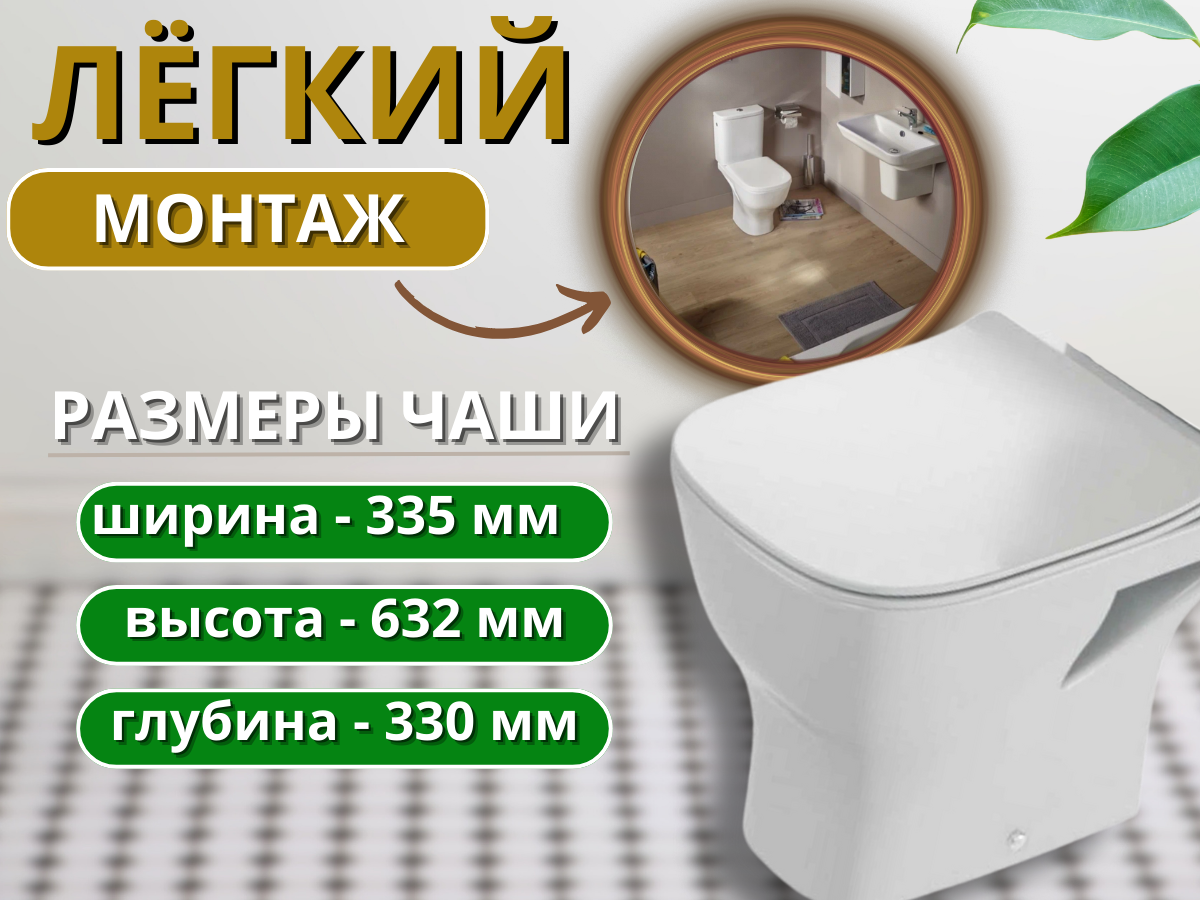 | Плюсы: | Дизайн. Безободковый. Сравнительно тихий смыв без брызг. |