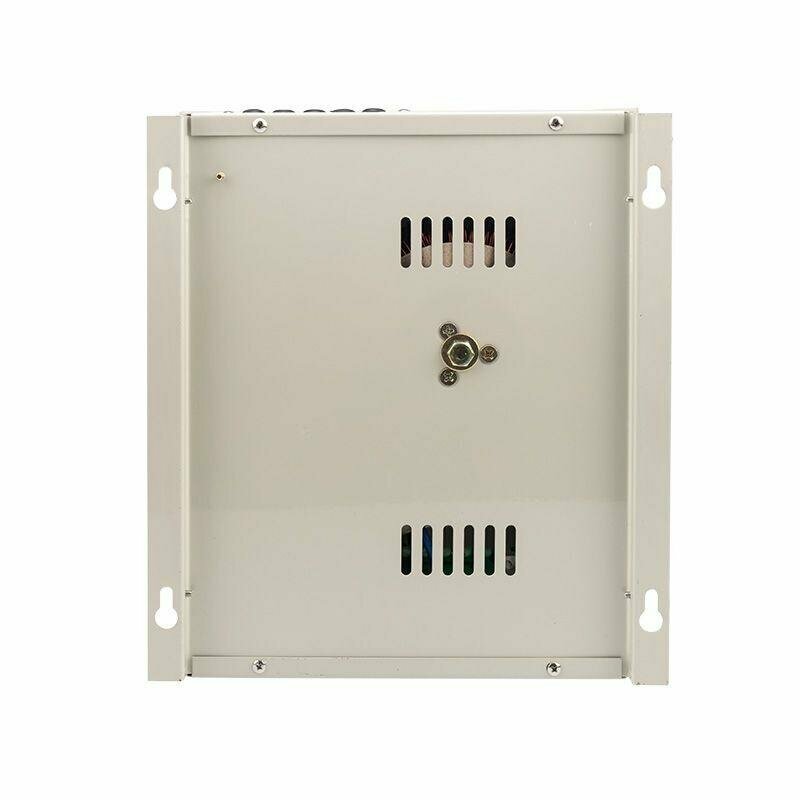Настенный вариант. Неплохая колодка и толстые провода в самом стабе. Экран: входное и выходное напряжение. Тяжёлый. |