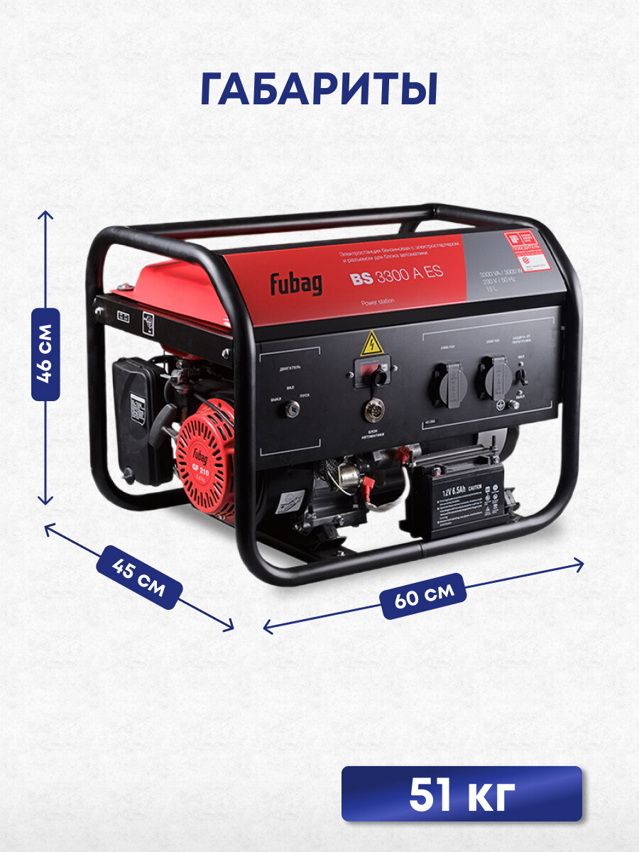 Ниже Вы можете прочитать отзывы на Генератор бензиновый FUBAG BS 3300 A ES, ознакомится с подробными характеристиками, посмотреть интересные обзоры и фотографии на Генератор бензиновый FUBAG BS 3300 A ES.