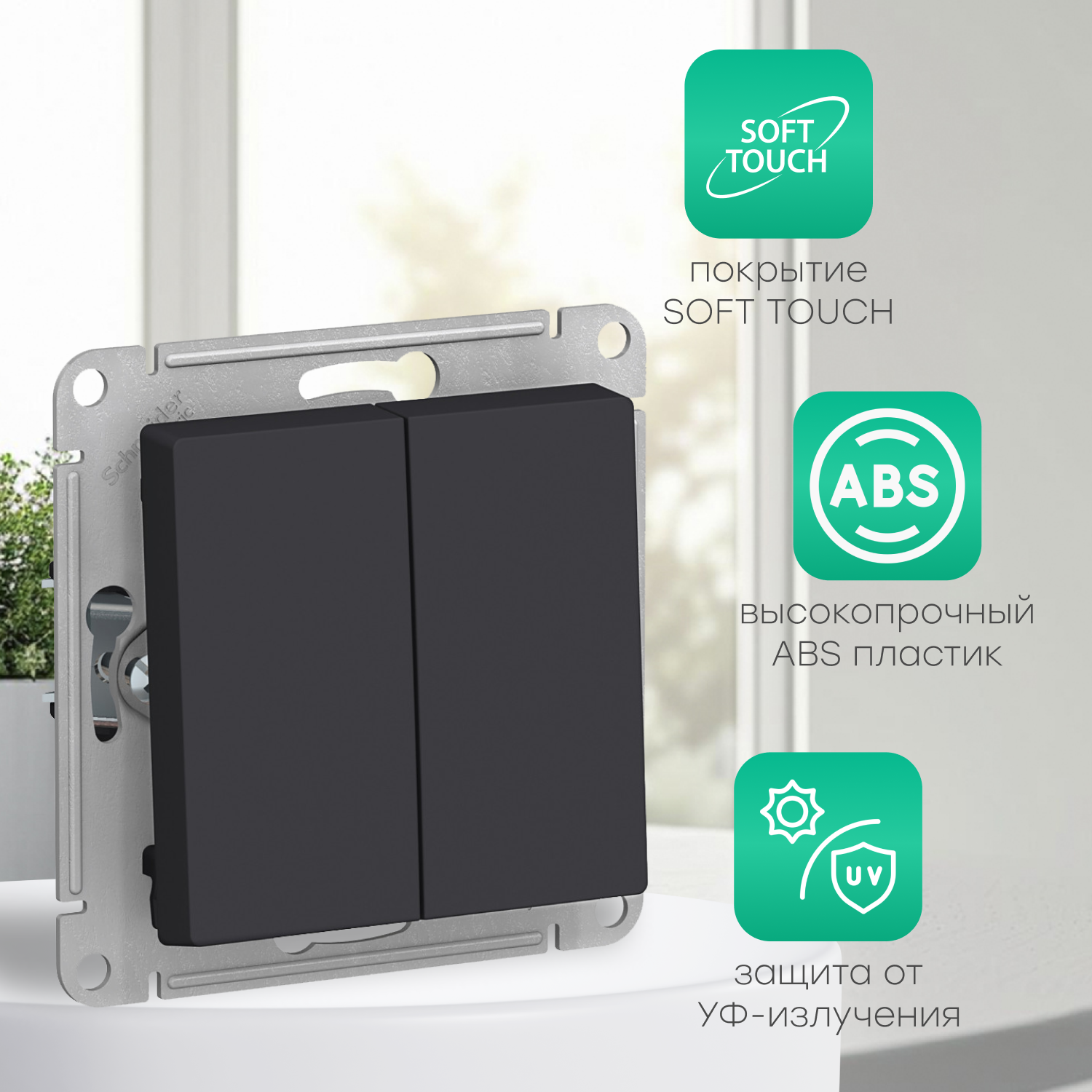 Купить Schneider Electric ATLASDESIGN 2-клавишный выключатель, сх.5, 10АХ, механизм, карбон ATN001051