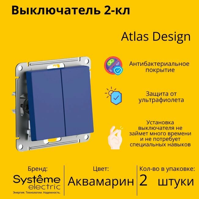 Купить Выключатель 2-кл. AtlasDesign (сх.5) 10AX механизм аквамарин | код.ATN001151 | Systeme Electric (2шт.в упак.)