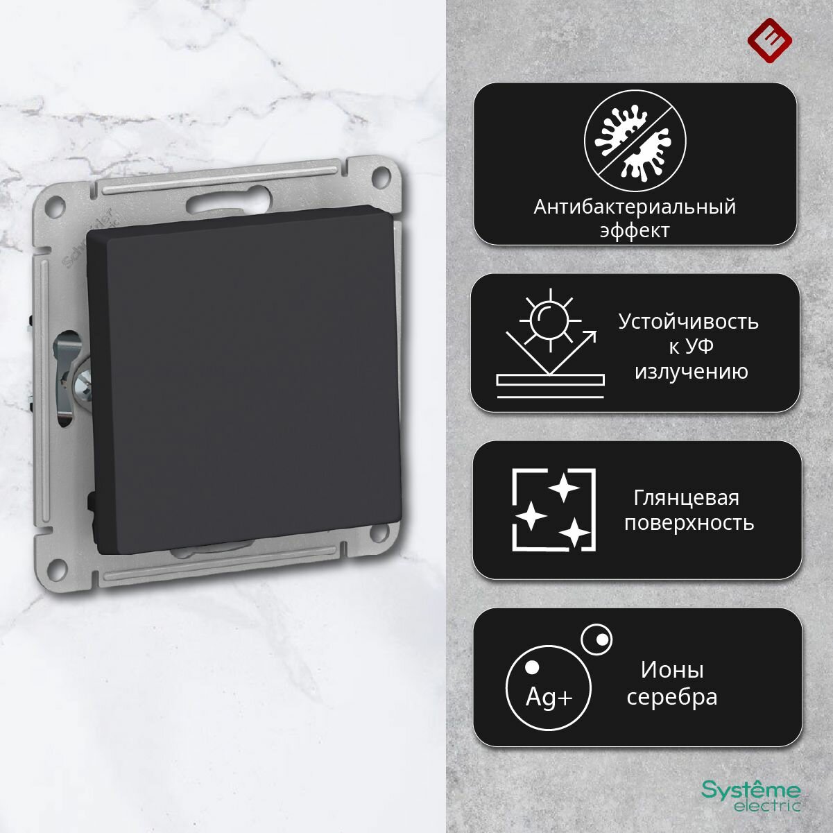 СохранитьВыключатель Schneider Electric AtlasDesign, 1-клавишный, карбон, ATN001011, 3 шт. интересное: