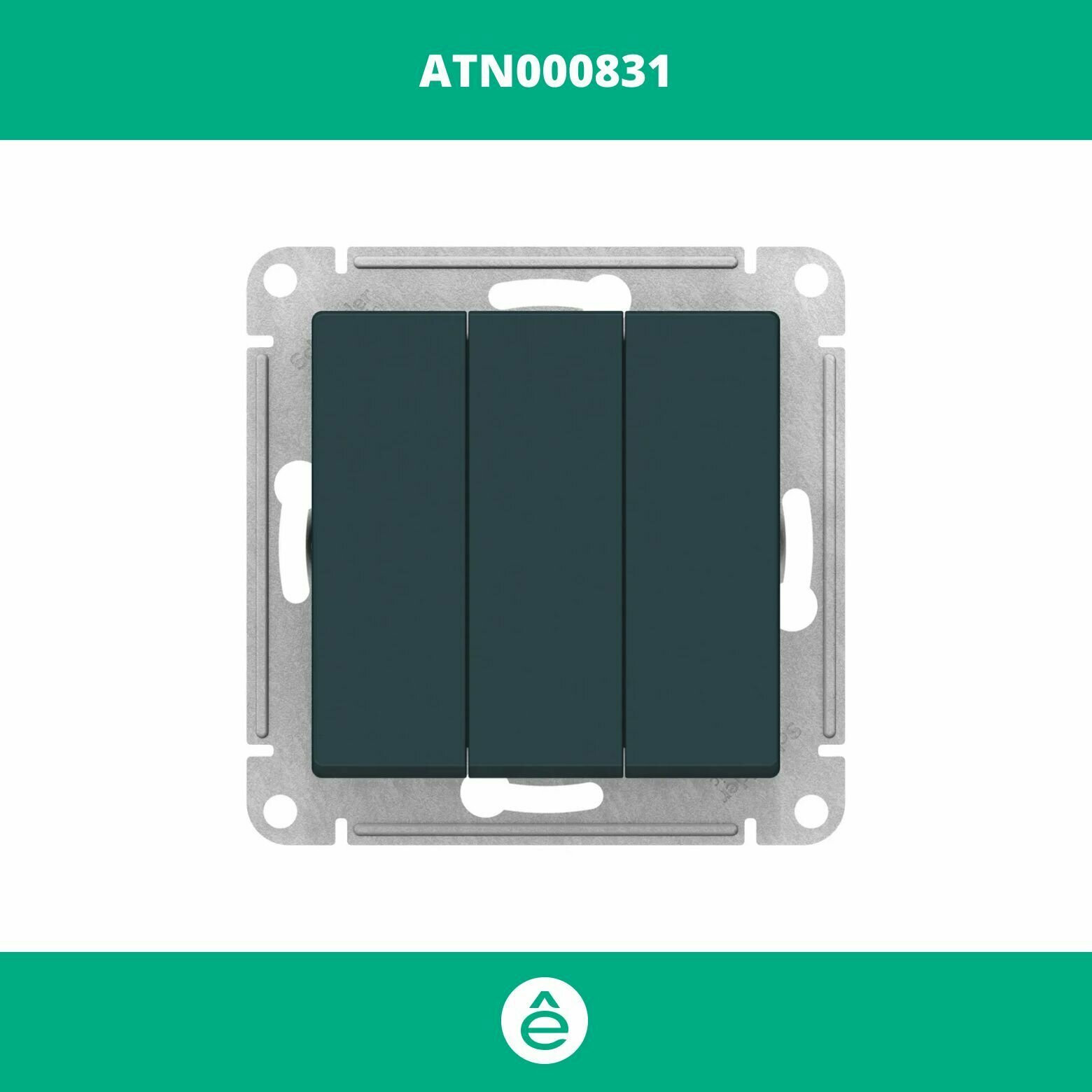 Купить Выключатель 3-кл. СП AtlasDesign 10А IP20 (сх. 1+1+1) 10AX механизм изумруд | код ATN000831 | Schneider Electric (7шт.в упак.)