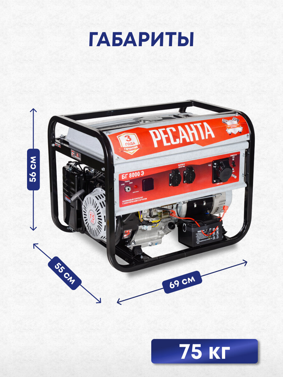 СохранитьБензиновый генератор РЕСАНТА БГ 9500 Р, (8000 Вт) интересное:
