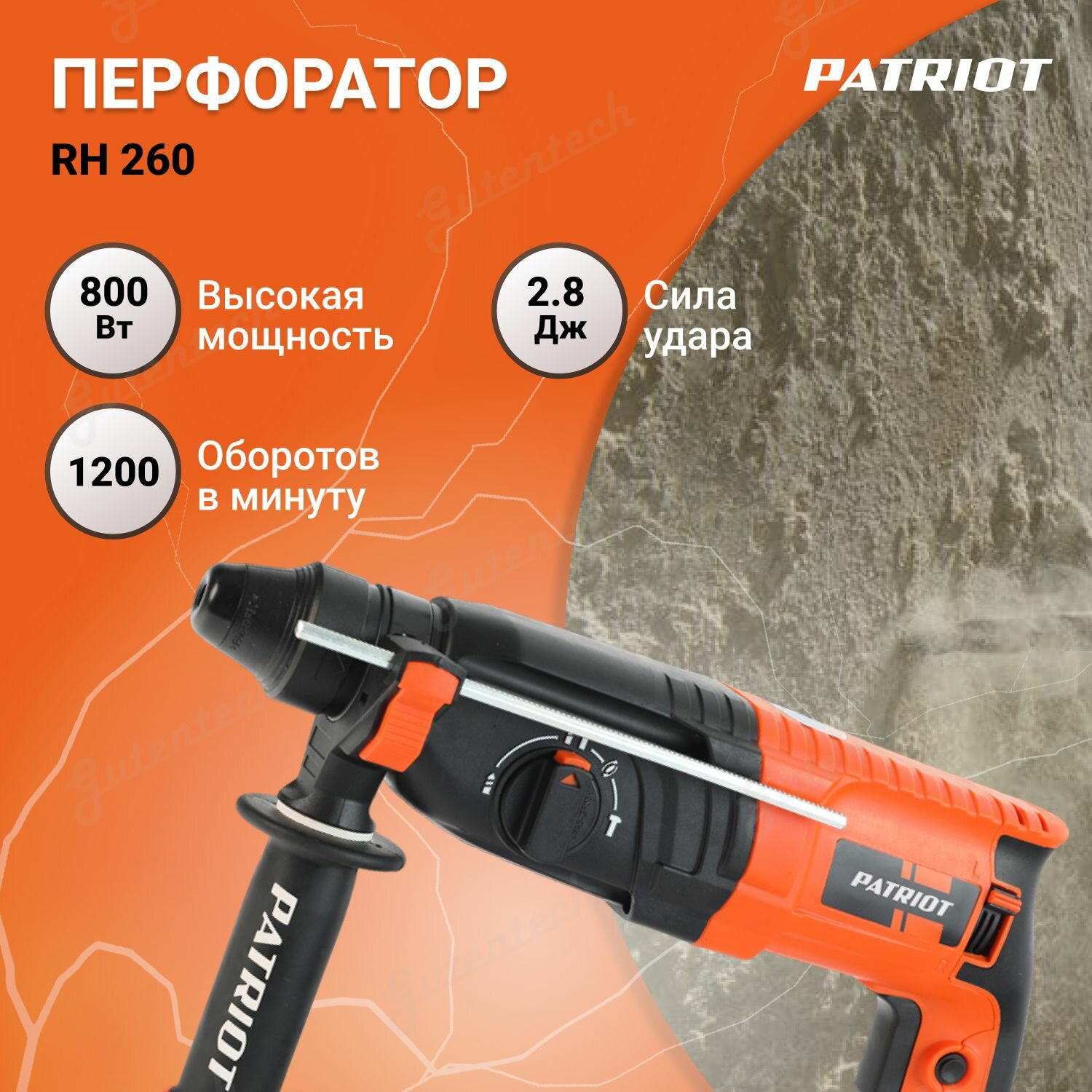 Перфоратор Patriot RH 260, 800 Вт, 2,8 Дж, SDS-plus