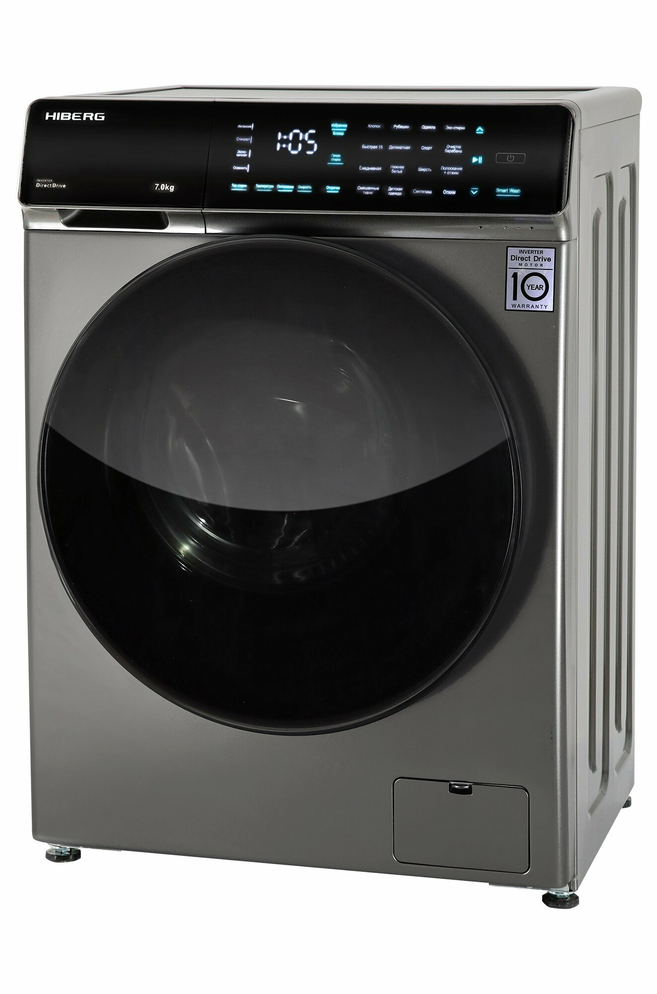 Стиральная машина HIBERG i-DDQ9 - 712 SD, инверторная, 7 кг загрузка, 1200 об/мин, 16 программ, Smart wash, таймер, прямой привод, темно-серый