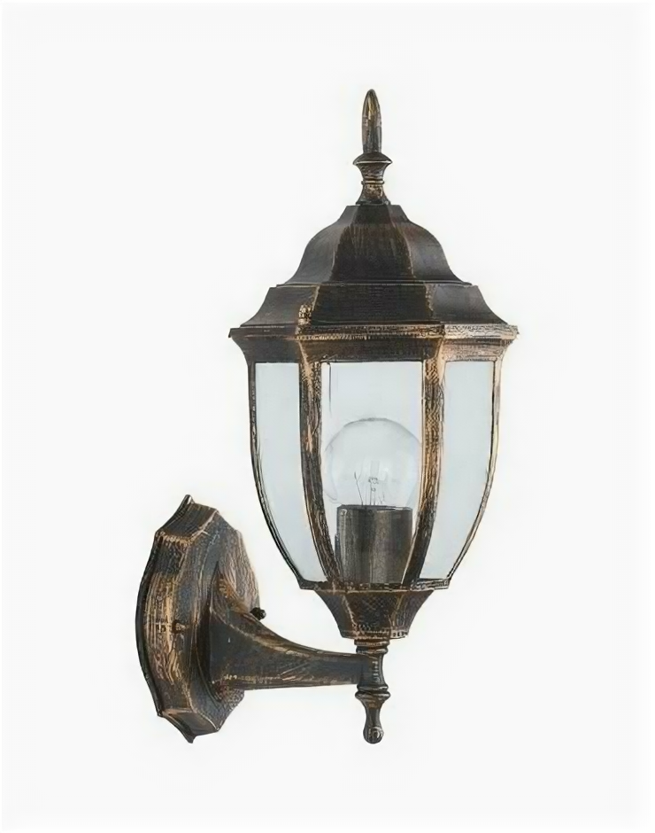Светильник садово-парковый PL6001 шестигранный на стену вверх 60W E27 230V, черное золото, FERON 11893 (1 шт.)
