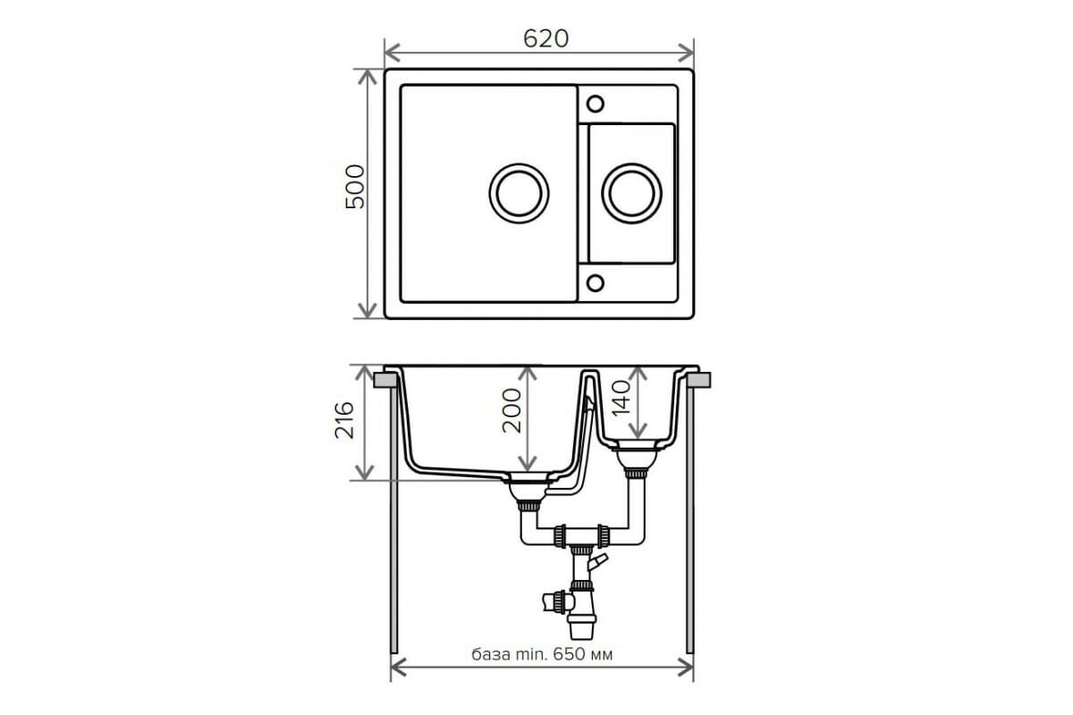 Мойка для кухни TOLERO Classic R-109 каменная двухсекционная Кварц (Уголь)