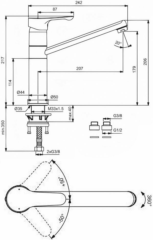 | Длина излива | 207 мм |
