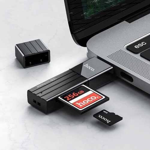 Картридер HOCO HB20 Mindful 2 in 1 USB 2.0/480Mbps, USB-А на microSD, SD (черный)