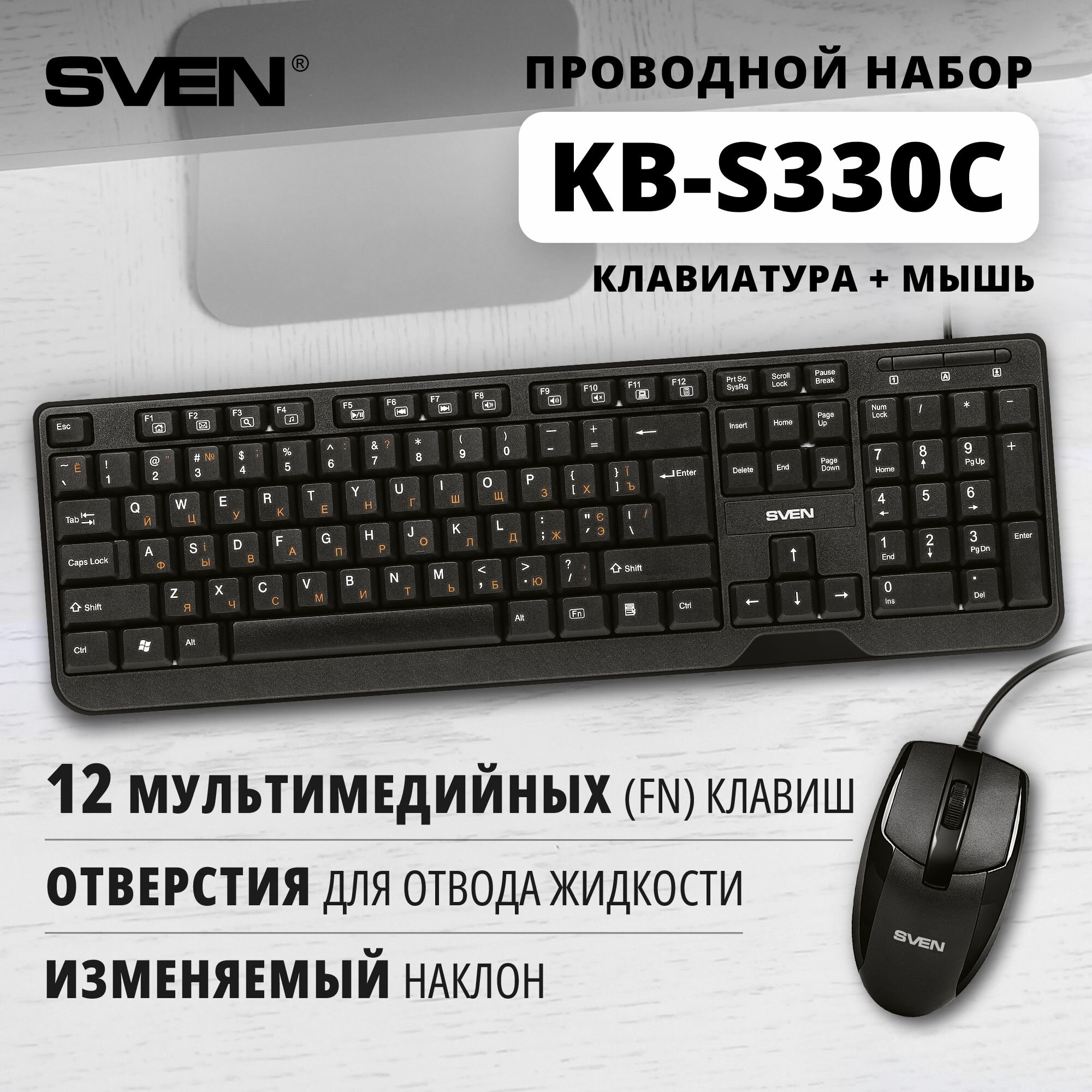 Набор клавиатура + мышь SVEN KB-S330C черные (USB, 104 кл., 3кн., 1200 dpi)