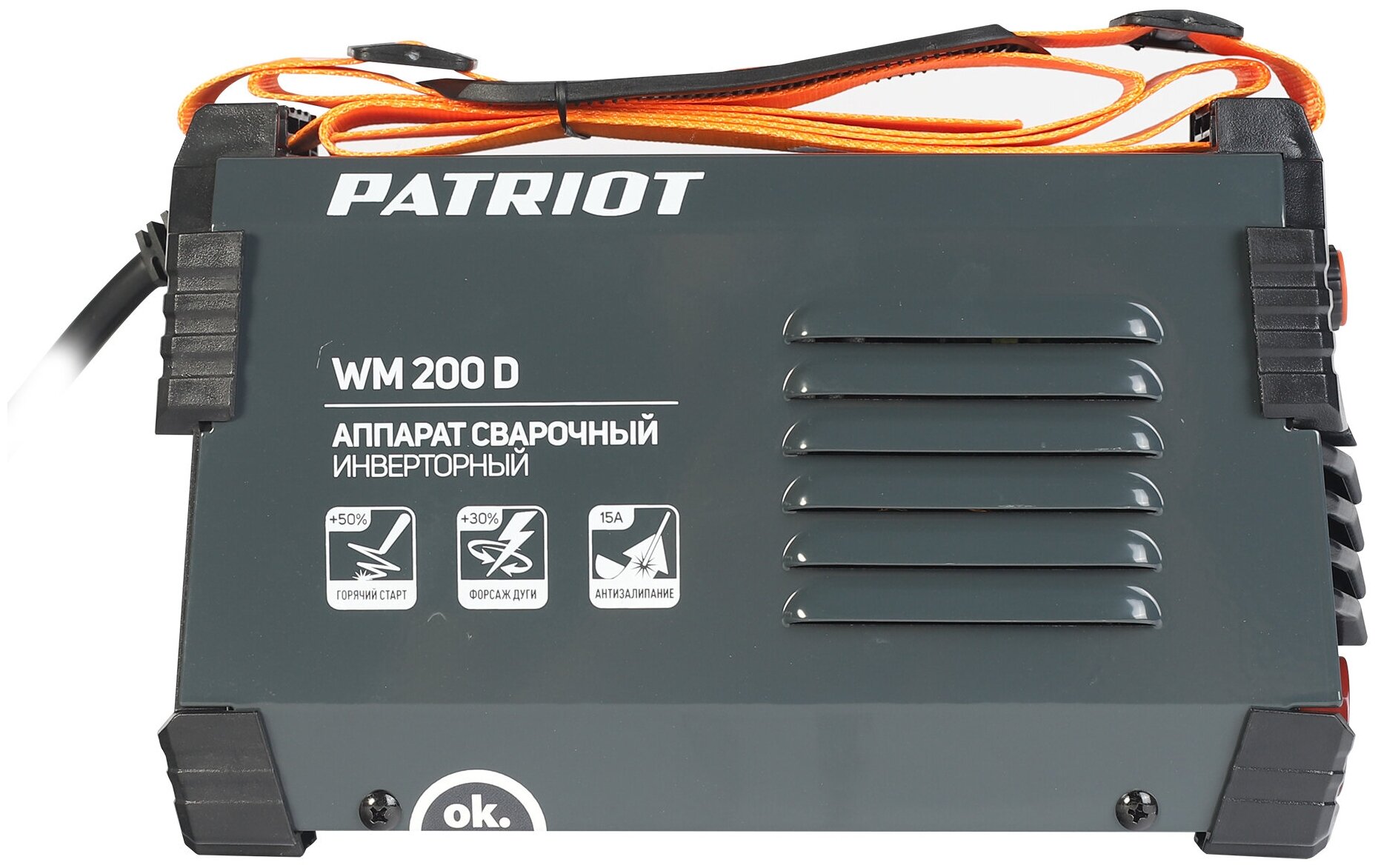 Аппарат сварочный инверторный PATRIOT WM 200 D /MMA /200 А / 9,1 кВт/ ПВ 70%/ работа от 140 В