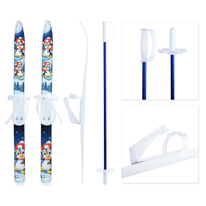 Лыжи детские Олимпик "Лыжики-Пыжики" Пингвинята, 75/75 см с палками