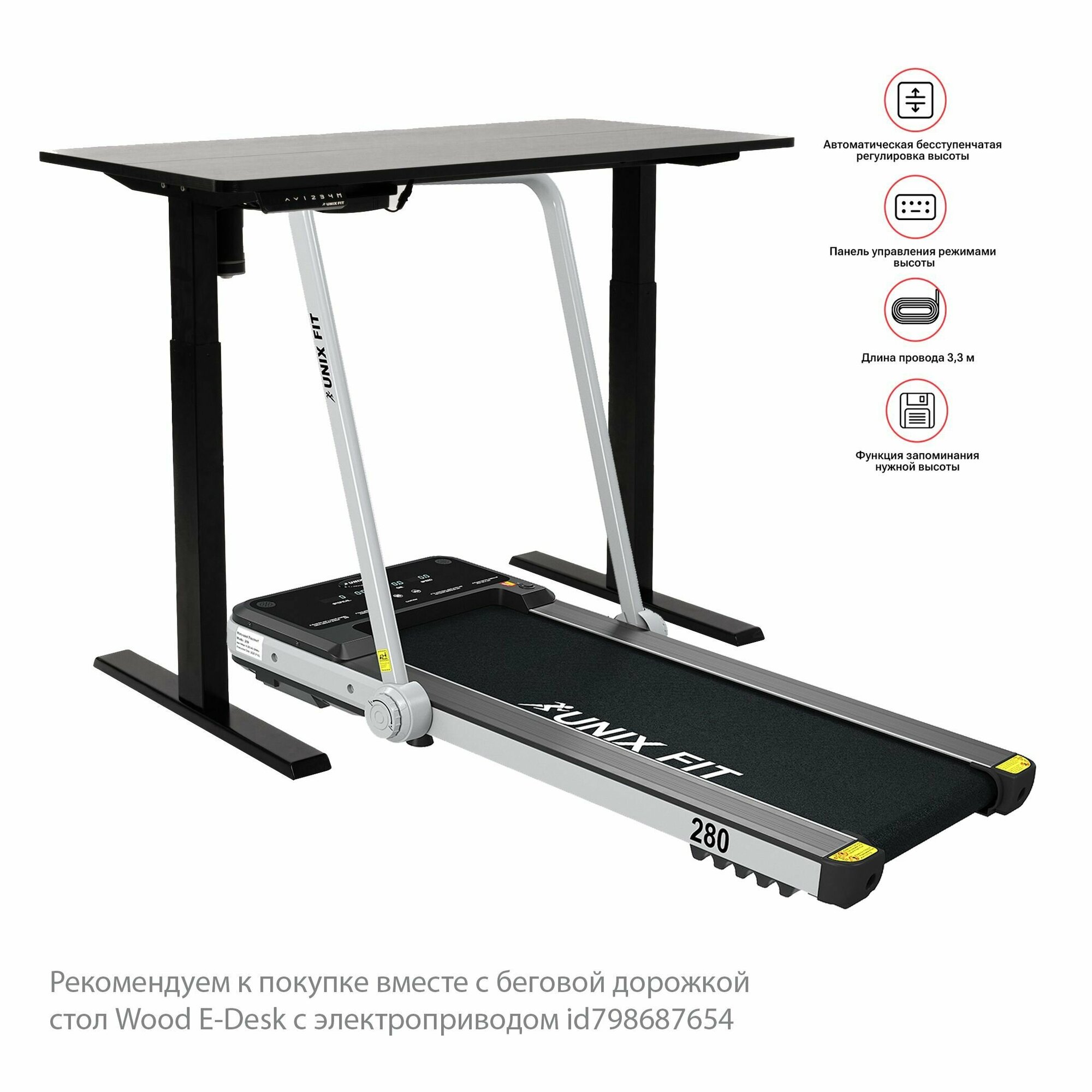 Беговая дорожка UNIX Fit Wood Way 2.0 APP, беговое полотно 100x42 см, гарантия 2 года UNIXFIT