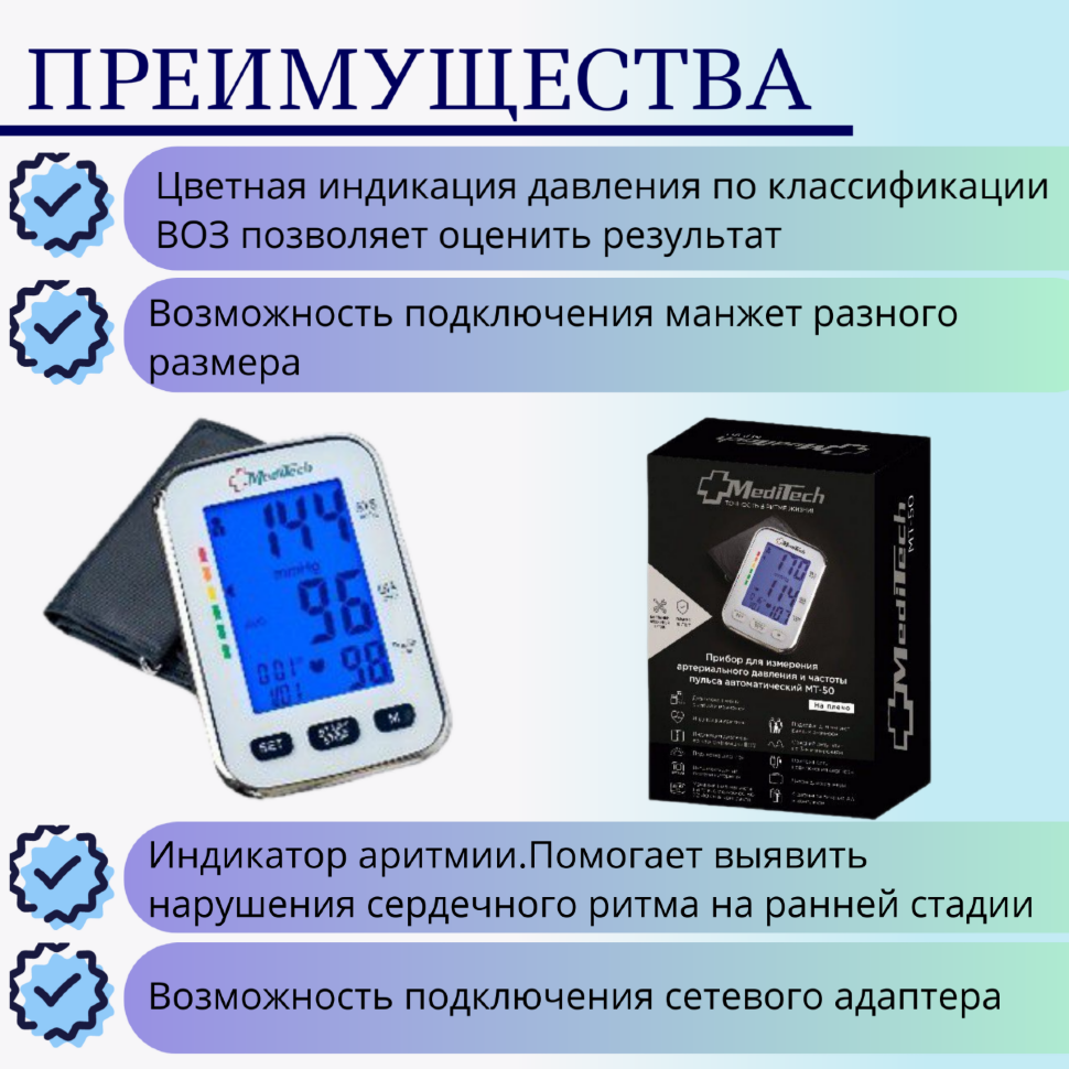 MediTech MT-50 / МедиТек МТ-50 - автоматический тонометр на плечо, для двух пользователей, с подсветкой