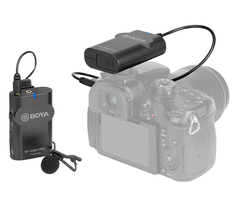 Двухканальный беспроводной микрофон нового поколения BOYA BY-WM4 Pro Передатчик TX4 Pro (1 шт.) +Приёмник RX4 Pro (1 шт.), 2,4 ГГц, 35 Гц-14 кГц ± 3 дБ, 84 дБ, 3 мВт, до 60 м.