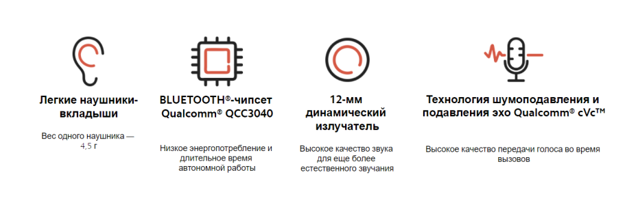 2. Очень на долго хватает заряда - ради эксперимента включил в 9 утра и не снимал, слушал музыку, периодическим разговаривал по телефону. Сели в 15 часов. Считаю очень достойно. 3. Хорошие микрофоны, меня слышат отлично. 4. Маленький кейс с магнитами. 5. Зарядка USB type C. 6. При вынимании из уха музыка ставится на паузы и обратно. |