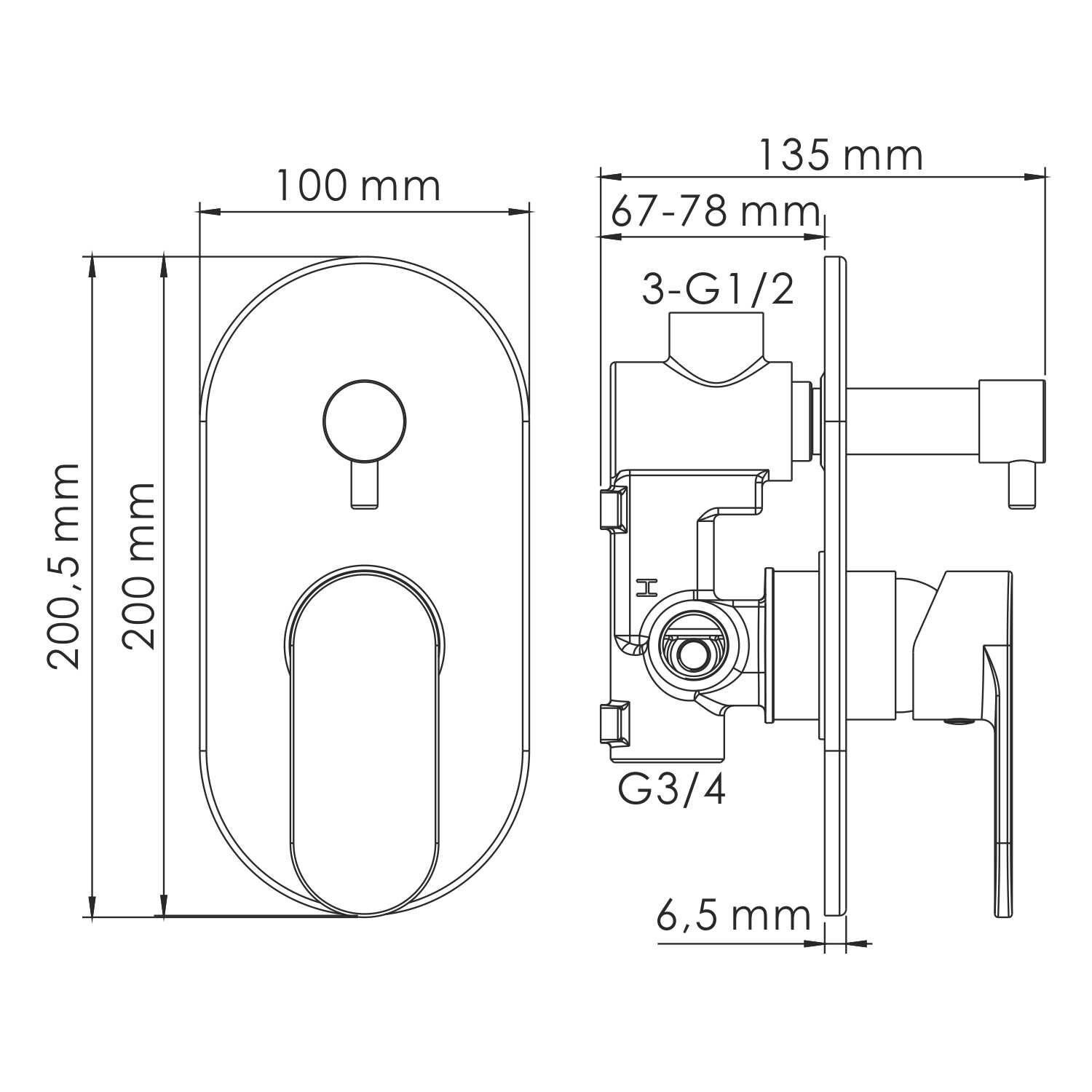 Смеситель встраиваемый WasserKRAFT Elbe 7441 для душа черный