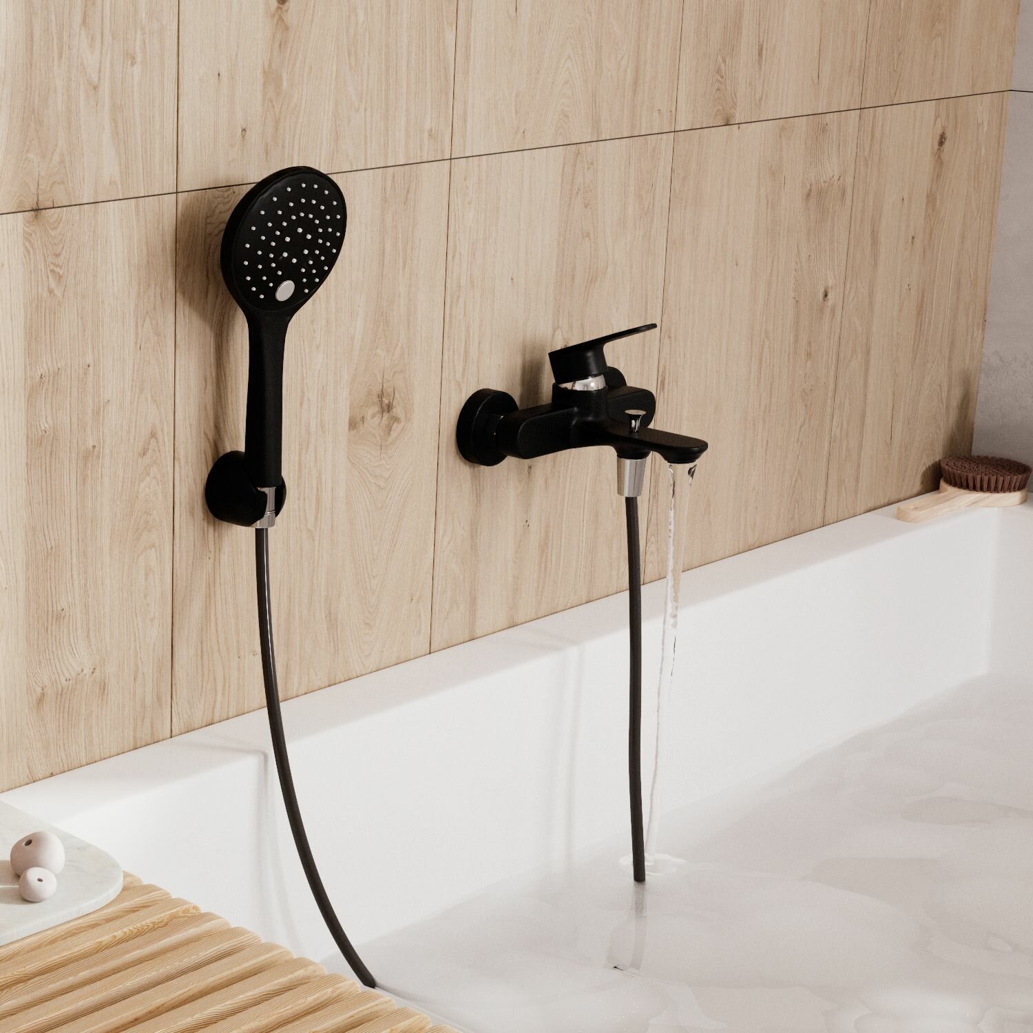Смеситель Wasserkraft Elbe 7401 для ванны и душа с коротким изливом, черный