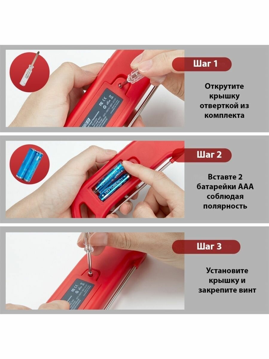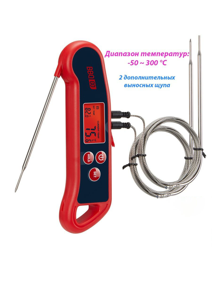 Кулинарный термометр электронный со щупом из нержавеющей стали, термометр для еды, мяса, вина, провод 1 метр / таймер кухонный