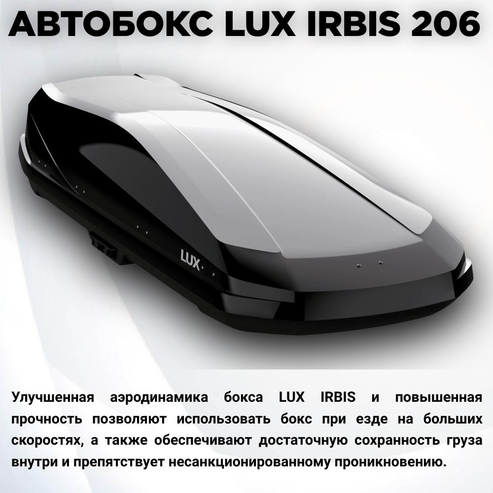 Автобокс на крышу автомобиля LUX IRBIS 206 (Люкс Ирбис 206), черный матовый, 470 литров, с двусторонним открытием, 2060х750х360 мм. (арт. 793488)