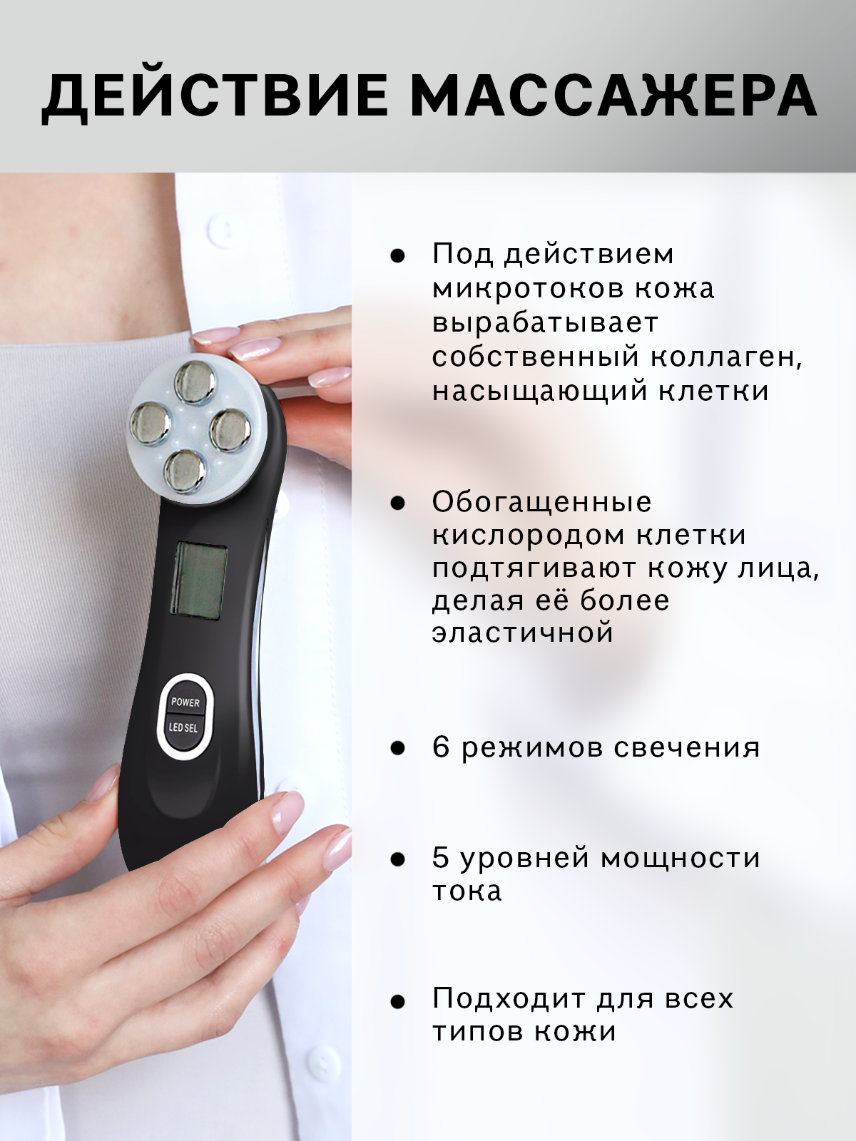 Микротоковый массажер для лица/лифтинг/хромотерапия/ Косметологический аппарат для электропорации, электростимуляции, мезотерапии, мезопорации