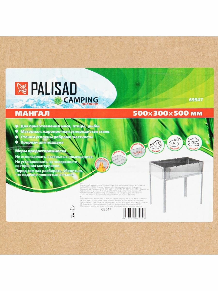 Мангал Palisad с ребрами жесткости 500x300x500 мм, Россия Camping, 69547