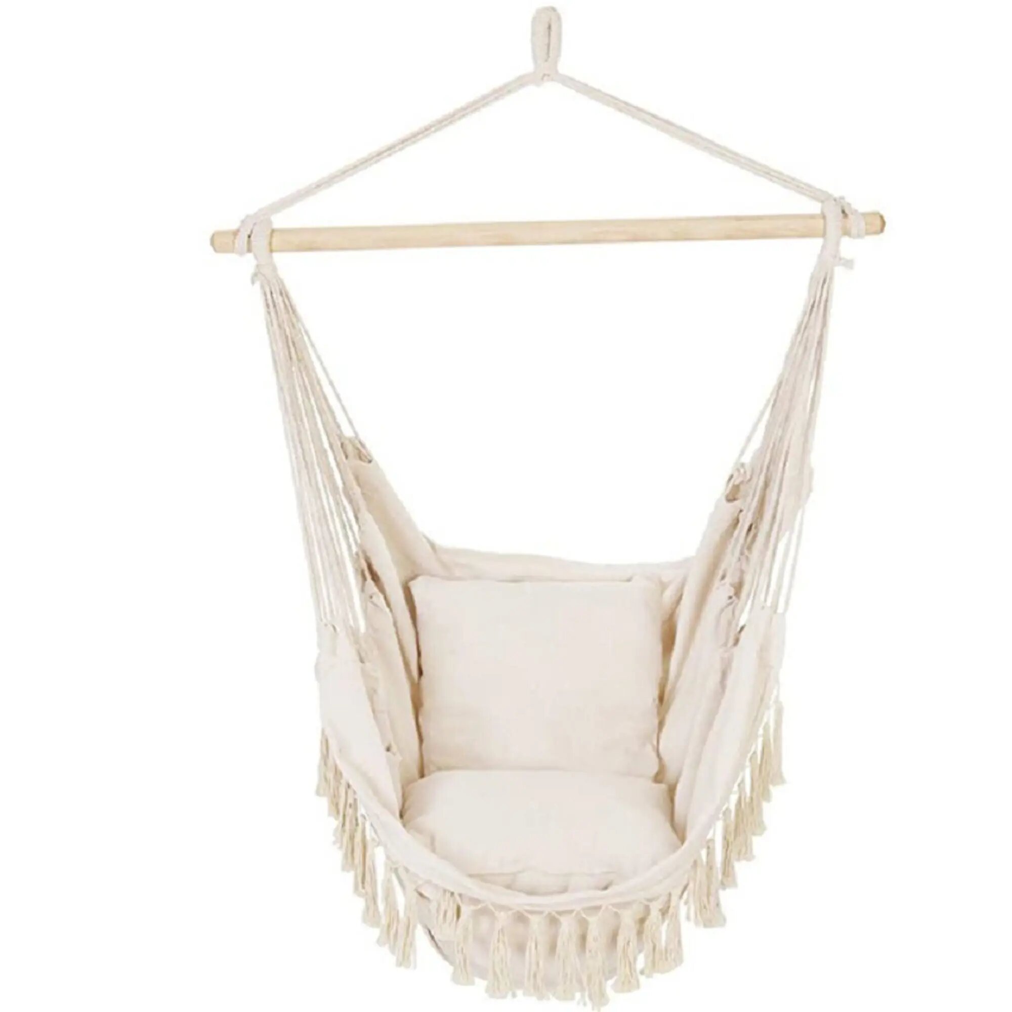 Тканевый гамак подвесной ZDK, Качели садовые из хлопка, 2 подушки в комплекте, 100*130 см, белый