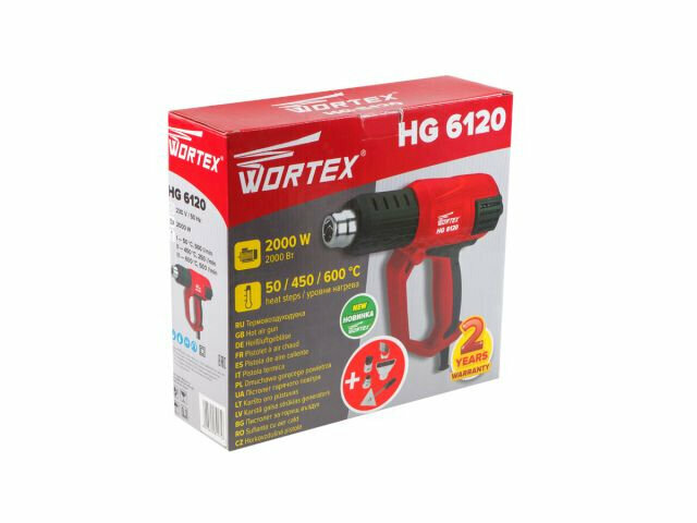 Термовоздуходувка WORTEX HG 6120 в кор. + набор сопл 2000 Вт, 3 режима., 50-600 °С (ступенч. рег., с набором насадок) (HG6120TK0811)