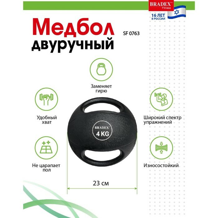 Купить Медбол Bradex SF 0763, двуручный, 4 кг Bradex 7674412 .