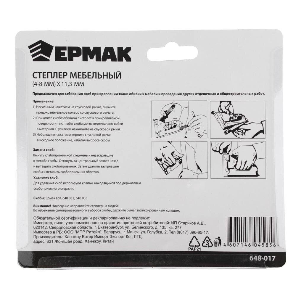 Степлер ермак 648-017 мебельный (4-8мм)*11,3мм