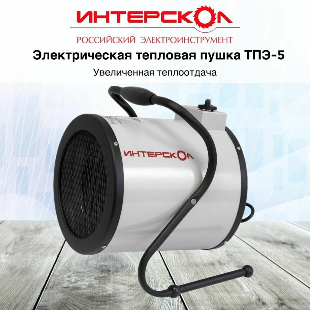 Ниже Вы можете прочитать отзывы на Электрическая тепловая пушка Интерскол ТПЭ-5 (5 кВт) серый, ознакомится с подробными характеристиками, посмотреть интересные обзоры и фотографии на Электрическая тепловая пушка Интерскол ТПЭ-5 (5 кВт) серый.