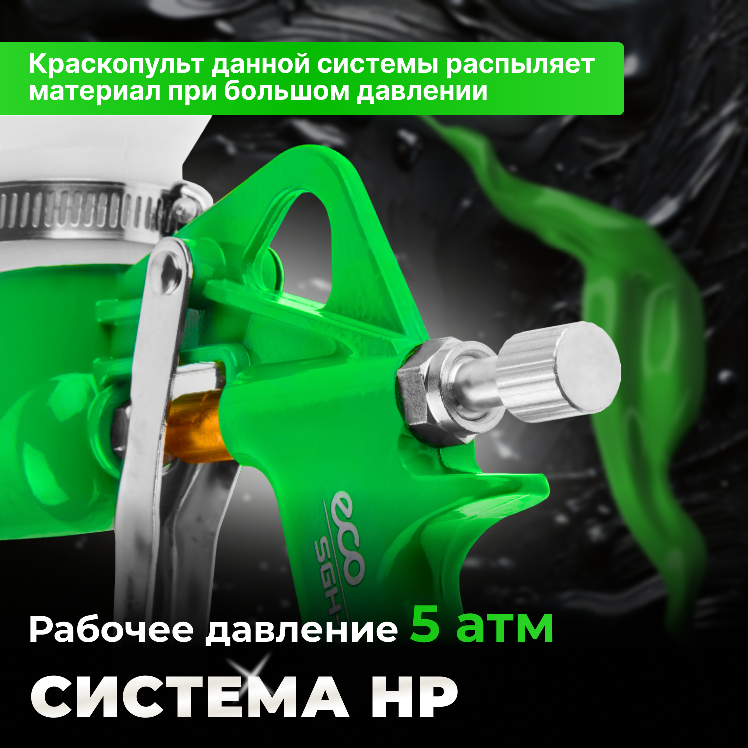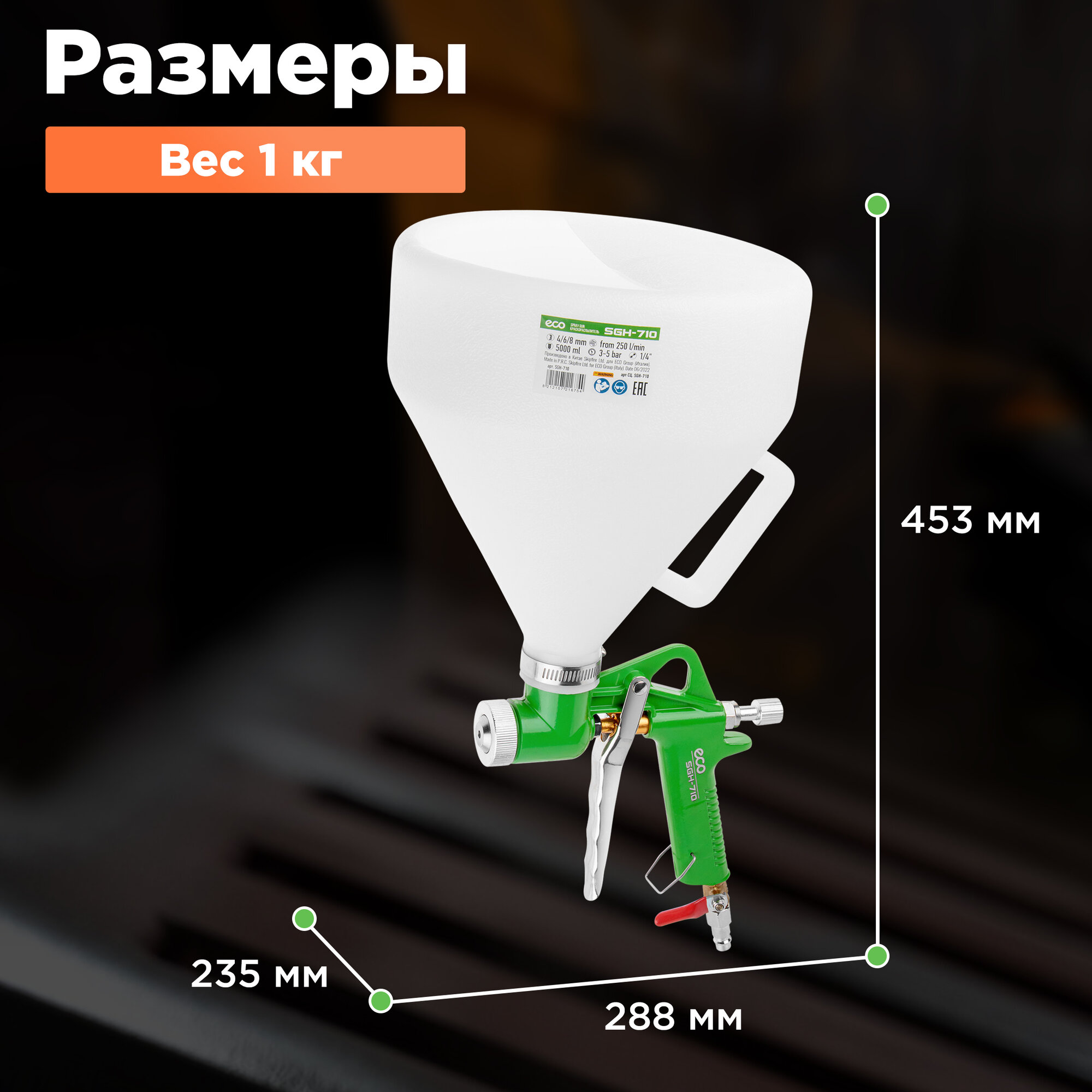 Картушный пистолет ECO SGH-710 HP, сопло ф 4, 6, 8 мм, верх. бак 5000 мл