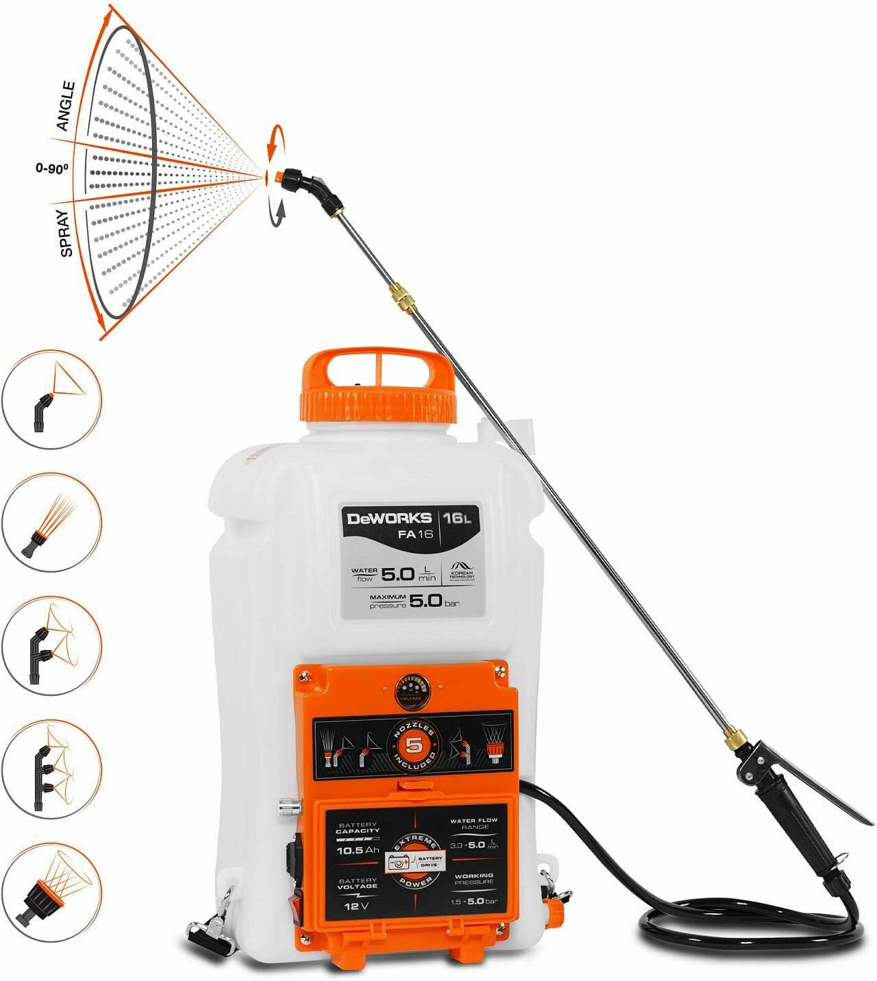 Опрыскиватель аккумуляторный DEWORKS FA 16, 16 л интересное: