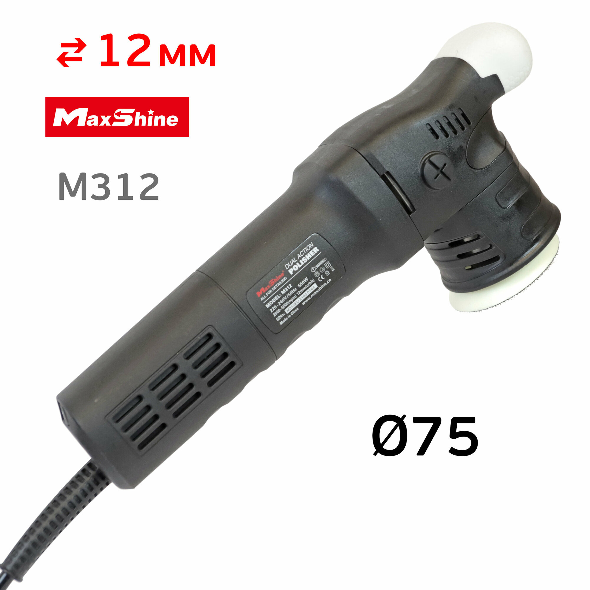 Полировальная машинка MaxShine M312 (ход 12мм, ф75мм, 2000-5500 об/мин, 550Вт) эксцентриковая DA
