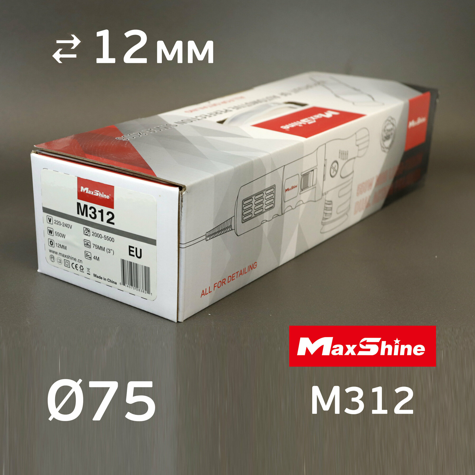 Купить Полировальная эксцент. машинка MaxShine M312 (ход 12мм, ф75мм, 2000-5500 об/мин, 550Вт)