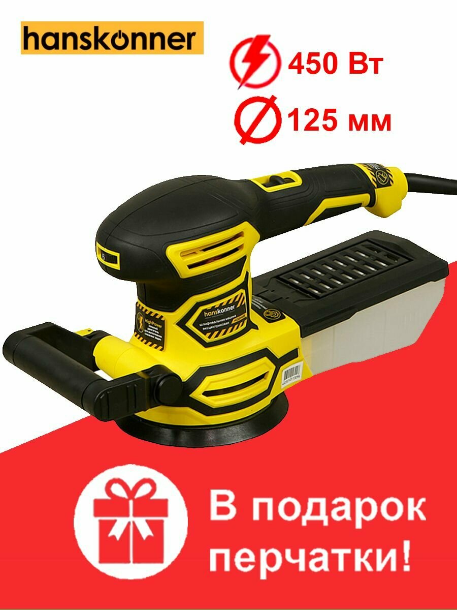 Эксцентриковая шлифовальная машина Hanskonner HOS8145R 450 Вт d=125 мм 6000-12500 об/мин кабель 4 м