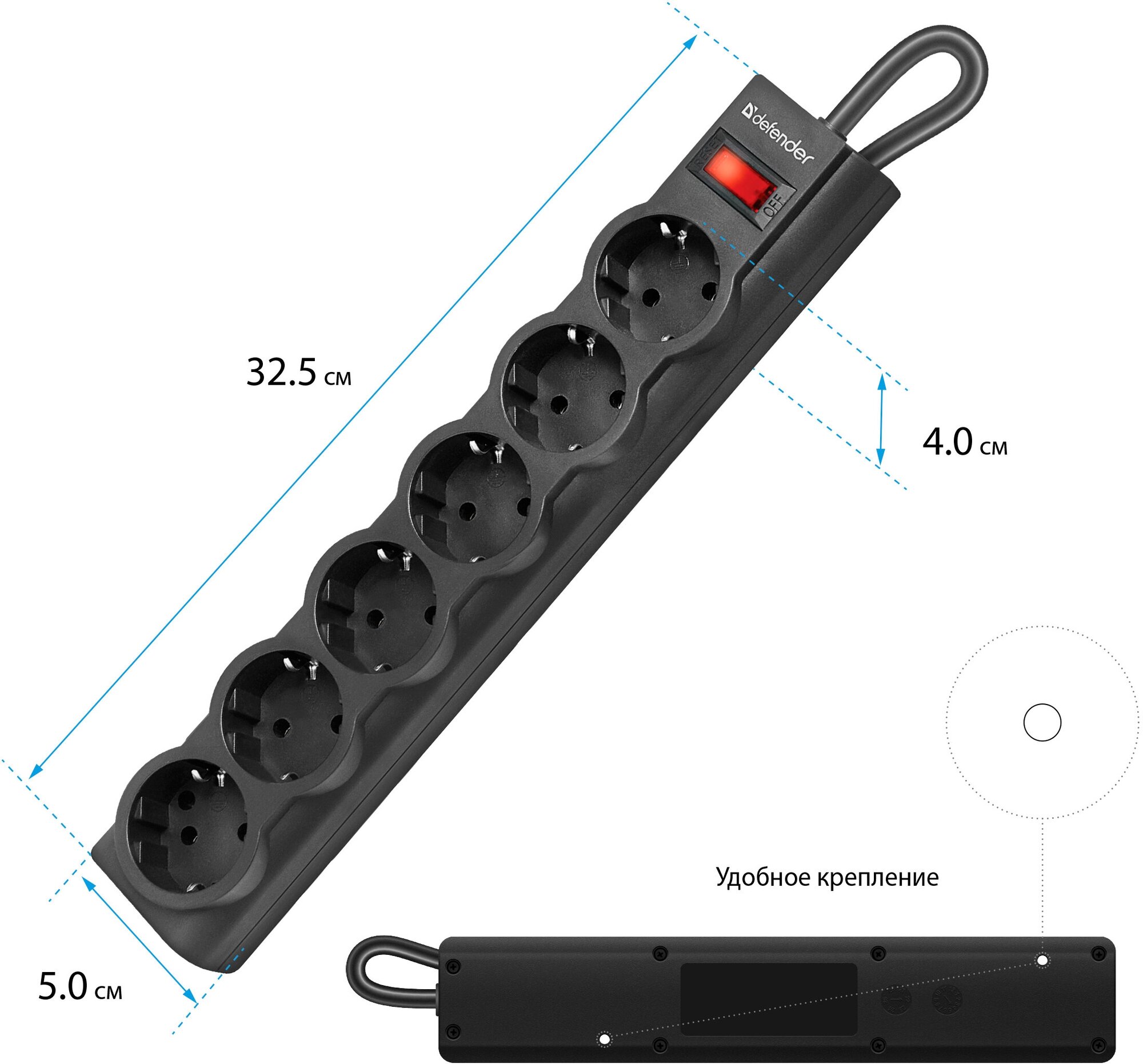 | Плюсы: | Черный, 6 розеток |
