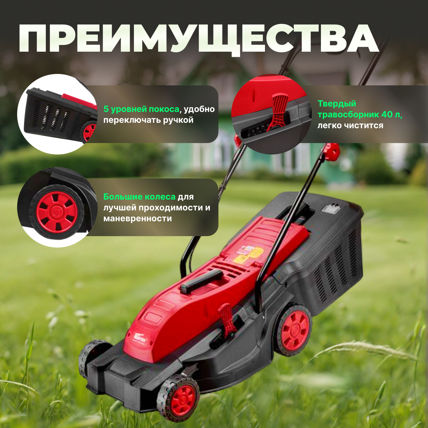 Газонокосилка электрическая WORTEX LM 4018 P 1600 Вт, ширина обработки 40 см, травосборник 40 л