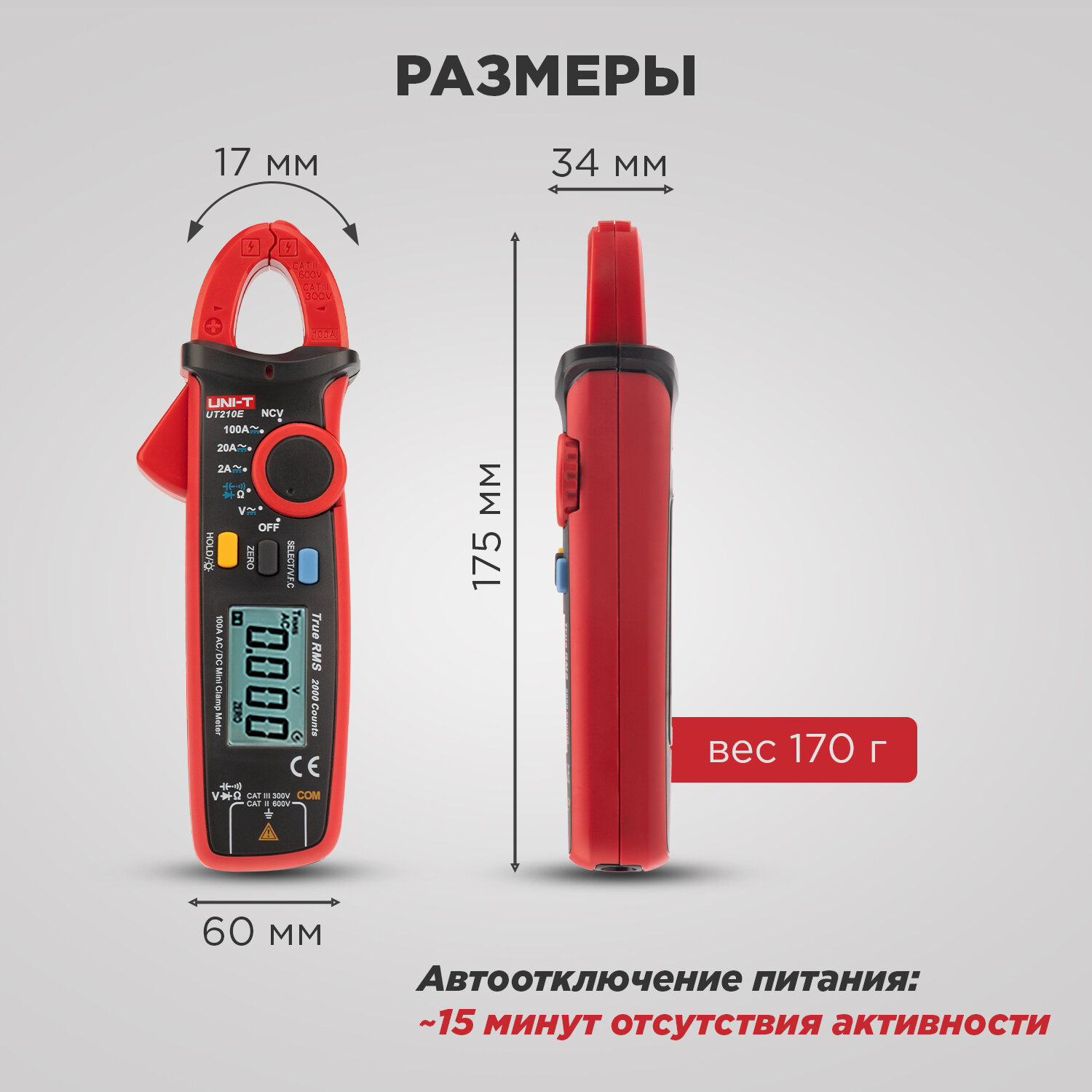 Фотоклещи цифровые UT210E UT210D, мультиметр-зажим переменного тока, True RMS, UT210C, UT210A, UT210B с автоматическим выбором диапазона