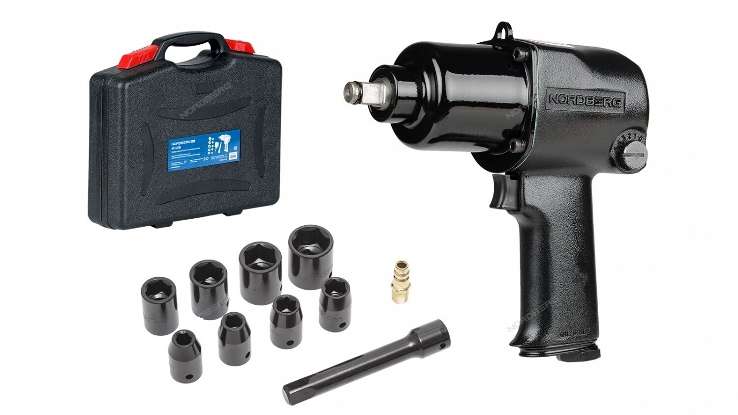 NORDBERG пневмогайковерт NP14085K ударный 1/2", 850Нм, с головками в кейсе NP14085K NP14085K