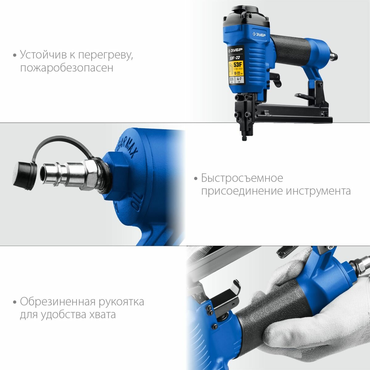 Купить Пневматический степлер (скобозабиватель) ЗУБР 53F-22, скобы тип 53F (10-22 мм), Профессионал 31935
